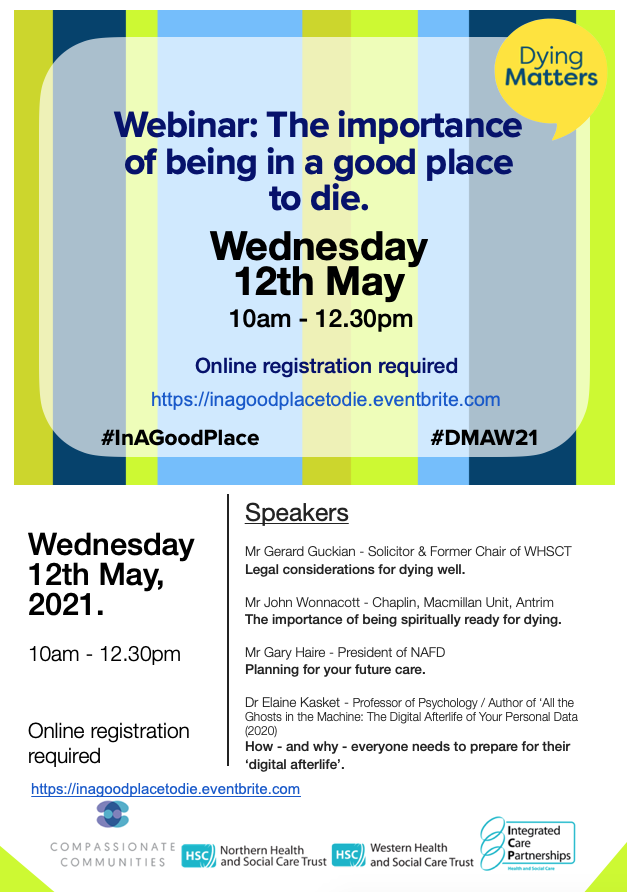 Register for you place at the Dying Matters Webinar: The importance of being in a good place to die.